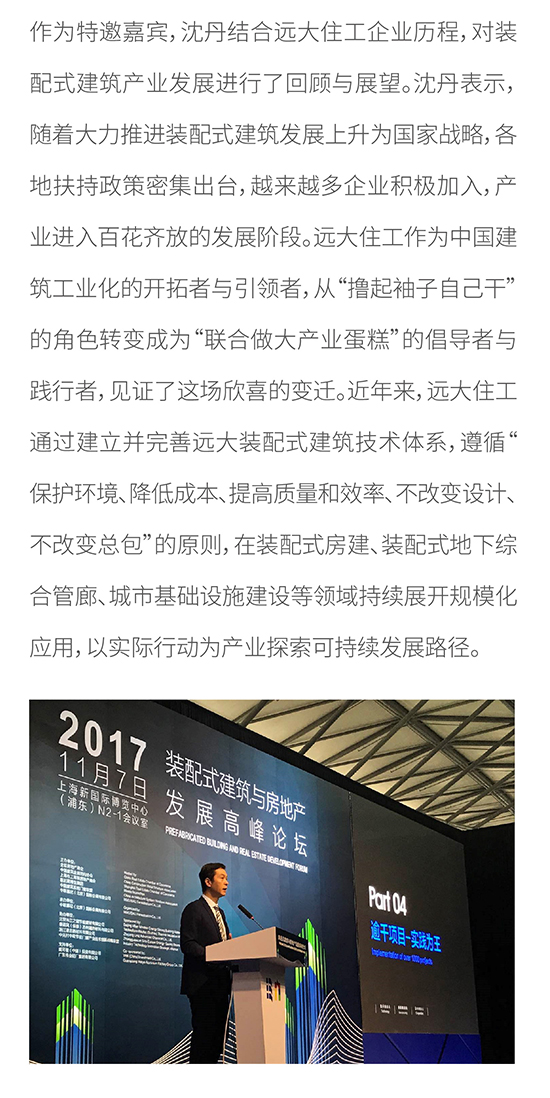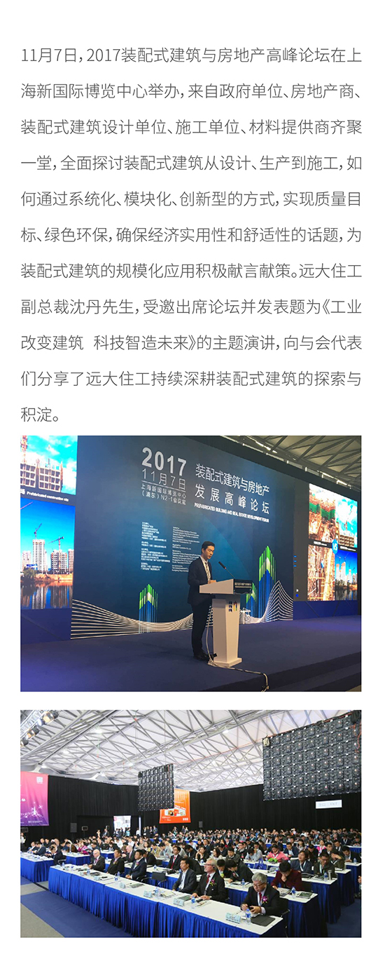2017装配式建筑与房地产高峰论坛在沪举办 远大住工副总裁沈丹受邀出席并发表主题演讲