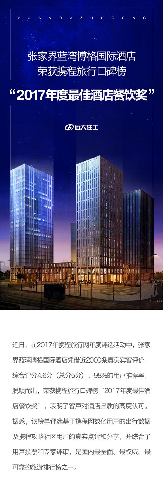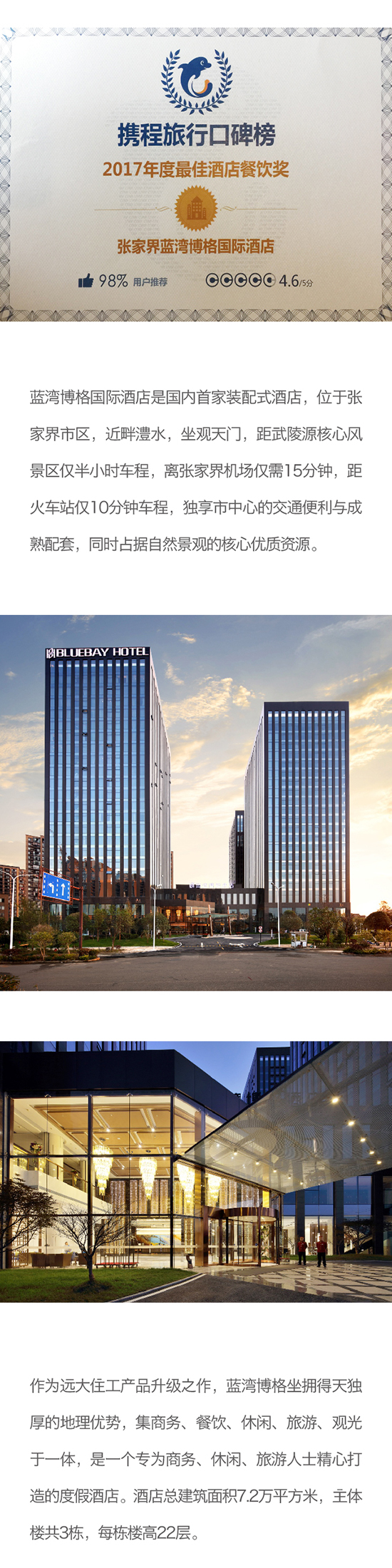 张家界蓝湾博格国际酒店荣获携程旅行口碑榜 “2017年度最佳酒店餐饮奖”