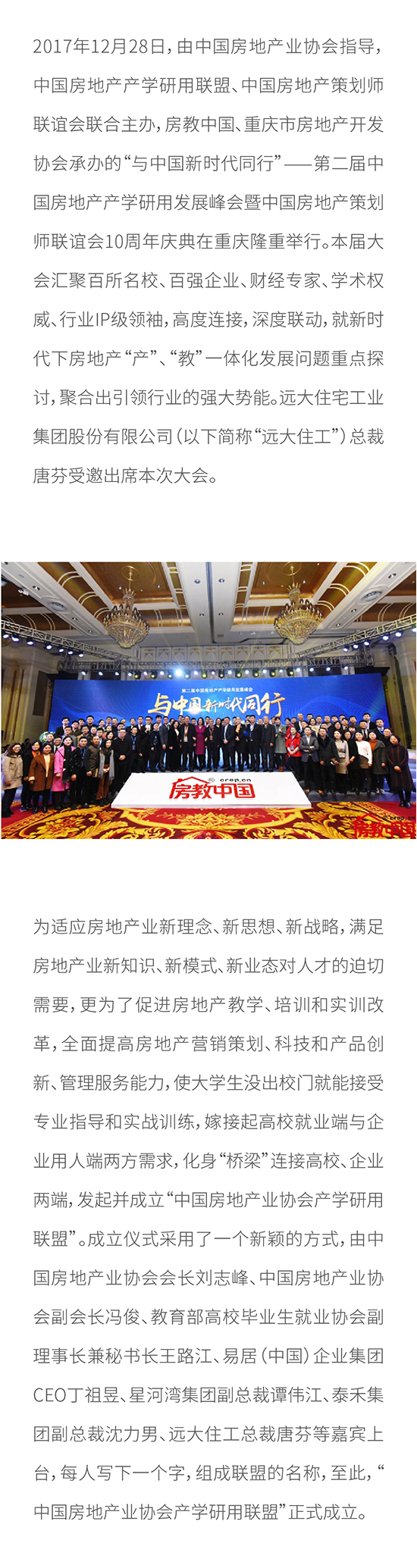 “与中国新时代同行” 总裁唐芬受邀出席第二届中国房地产产学研用峰会