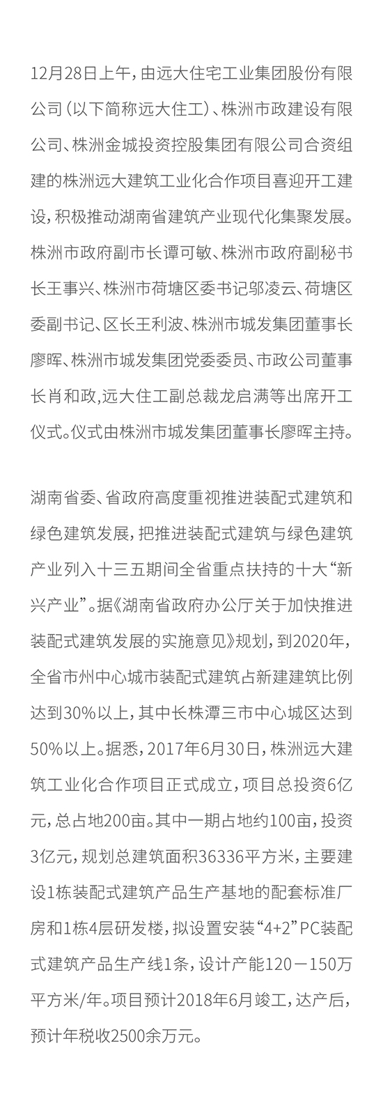 株洲远大喜迎开工建设 奋力谱写湖南省建筑产业现代化集聚发展新篇章