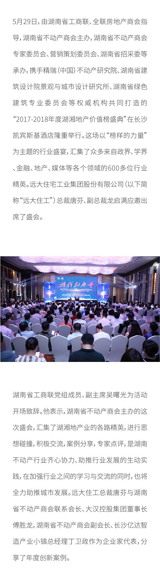 2017-2018湖湘地产价值榜发布 远大住工揽两项大奖