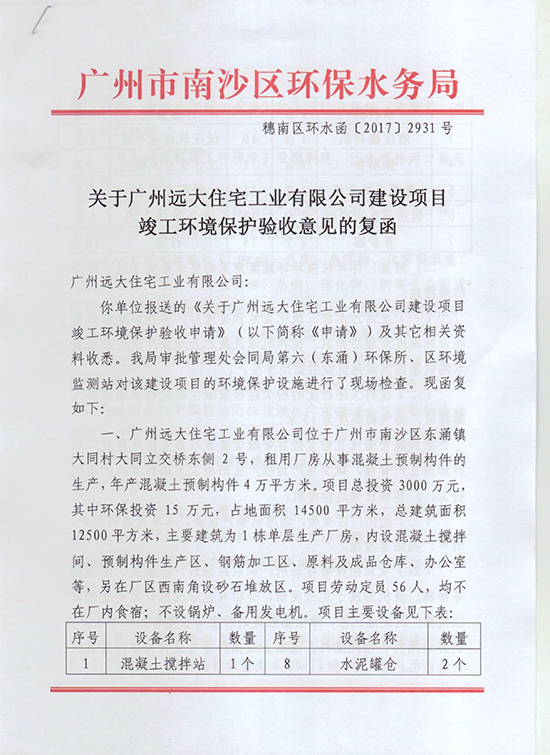 关于广州远大住宅工业有限公司建设项目竣工环境?;ぱ槭找饧母春?/h1>