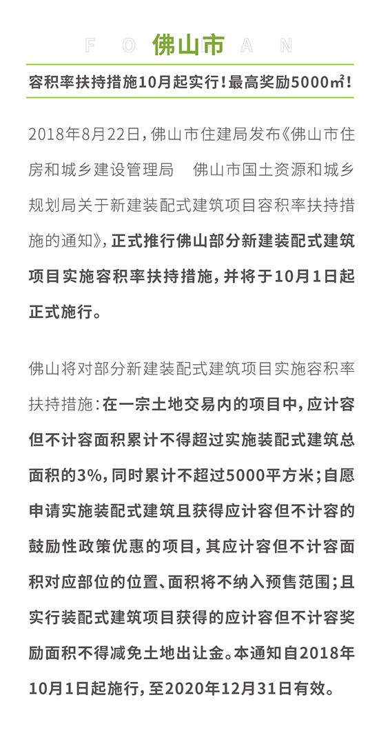 2018年上半年,多地出台装配式建筑计容面积鼓励政策