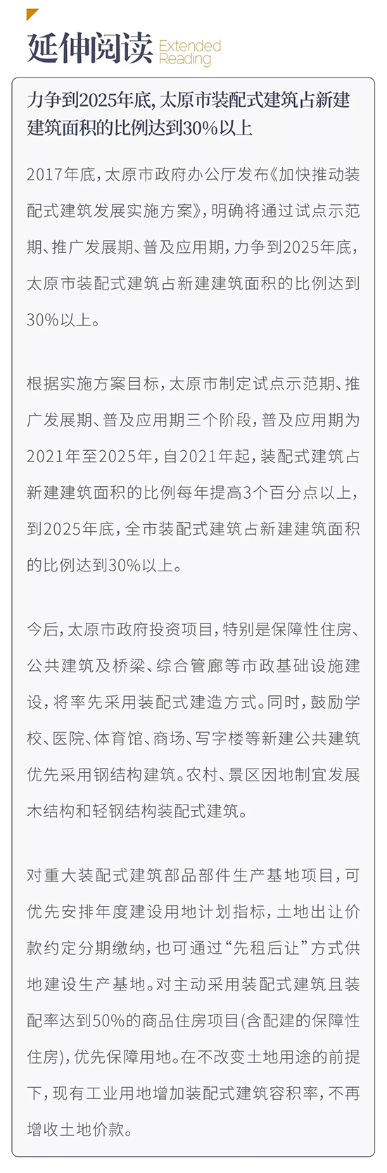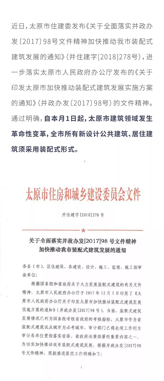 本月1日起,太原市所有新设计公共建筑、居住建筑须采用装配式建筑